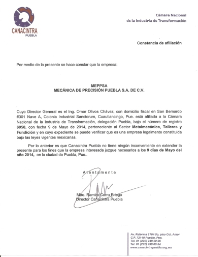 Socio activo en la Camara Nacional de la Industria de la Transformación. ( CANACINTRA )